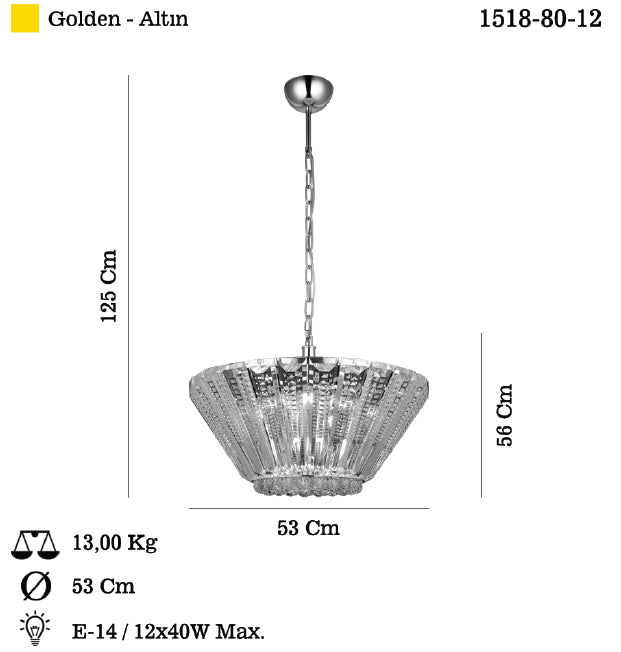 LORENA Q50 DIA GOLDE COLOR CHAN DELIER 12XE14